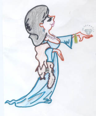 This picture shows a rich lady who is showing up with her huge diamond ring.
