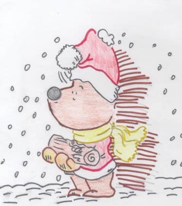 Little cute hedgehog is holding a piece of wood, because its cold :}